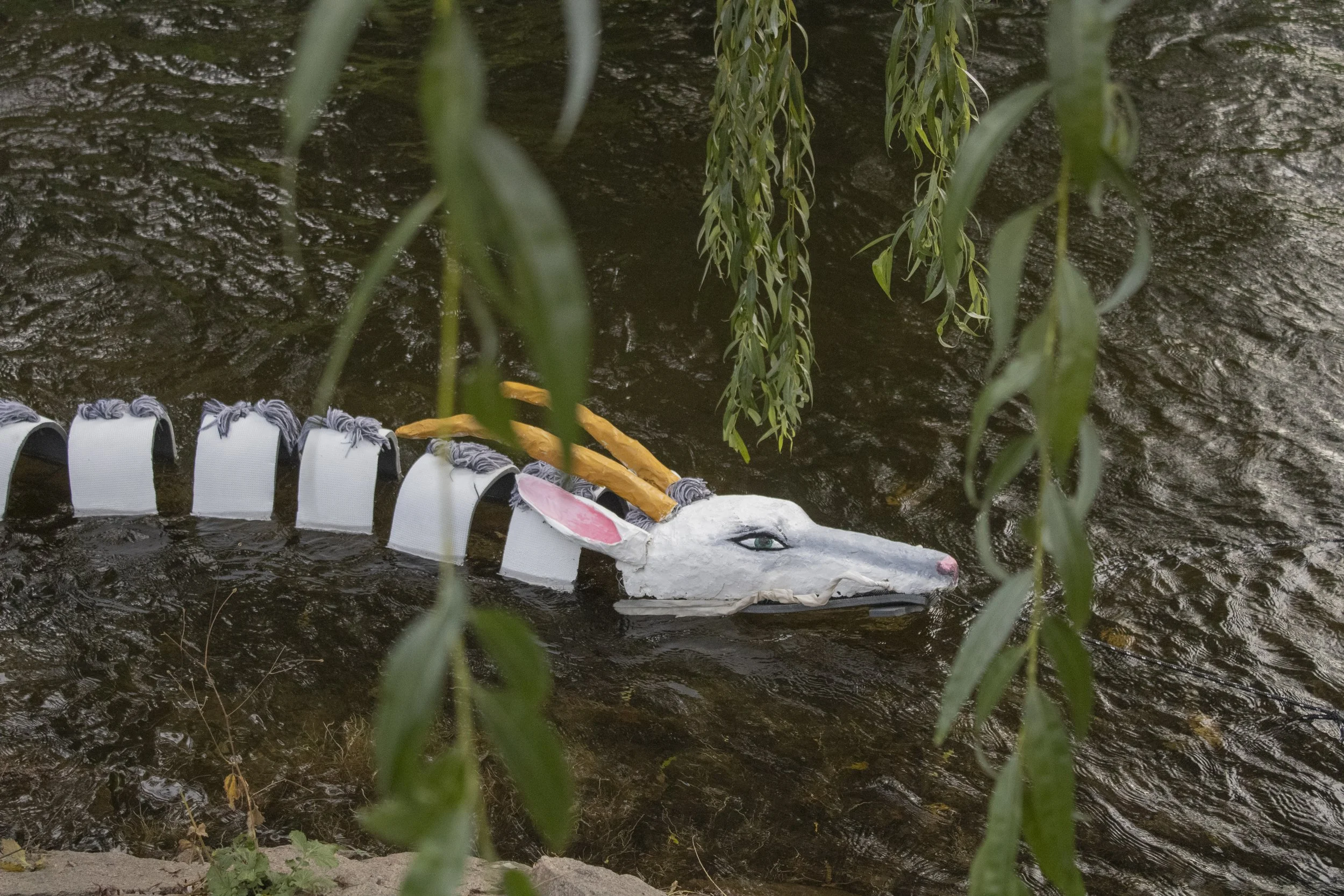 A collaboration with talented Mathilde M. Beck! We were asked to make something for Elvelangs in Oslo, a yearly riverside wandering with loads of art and lights and music. We wanted to make a dragon floating in the river, and chose Haku not just because we’re Spirited Away fans, but because he is a river god, and the white color would be visible in the dark.